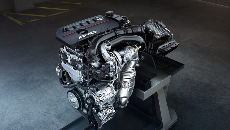 AMG CLA 35 4MATIC: El motor de gasolina de dos litros con turbocompresor de segmento y tecnología Mild Hybrid impresiona por su capacidad de aceleración y su ágil tiempo de respuesta. La aspiración de aire y la distribución del motor adaptadas, así como el sonido deportivo del motor, subrayan el «ADN» Mercedes-AMG de este grupo.
