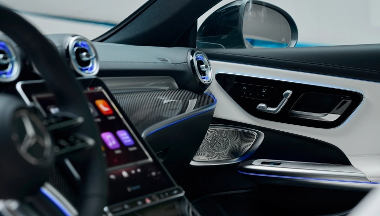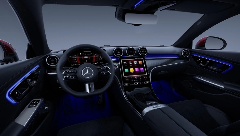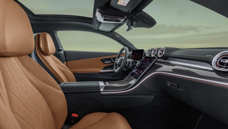 El interior conjuga deportividad con un alto nivel de confort. Relájate en los asientos deportivos o disfruta de la excelencia del sistema de sonido Burmester 3D con 17 altavoces. Experimenta una revolución en el puesto de conducción con la última generación de MBUX. El nuevo diseño del tablero de instrumentos, la línea AMG Line Interior y la iluminación de ambiente complementan la imagen del nuevo CLE Coupé.