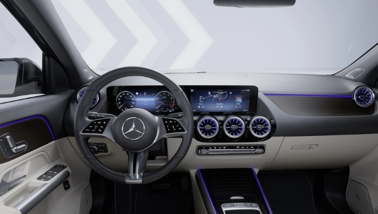 El habitáculo del GLA conjuga una gran sensación de espaciosidad con alta tecnología y carácter deportivo. El diseño fluido y moderno sienta nuevos referentes. Destacan el puesto de conducción widescreen con una pantalla multimedia de 10.25 pulgadas y las molduras de adorno con efectos únicos en el interior.