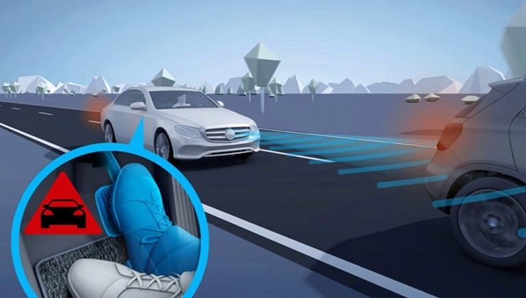 Active Brake Assist puede ayudarlo a evitar colisiones traseras con vehículos que circulan por delante o estacionados, así como accidentes con peatones o ciclistas en movimiento. Además de una advertencia de distancia y colisión, sus sistemas de frenado también ofrece un refuerzo de frenado específico para cada situación, hasta un frenado de emergencia autónomo.