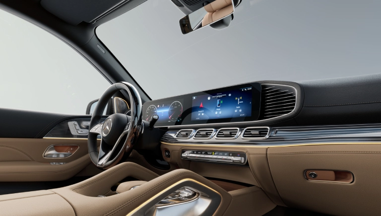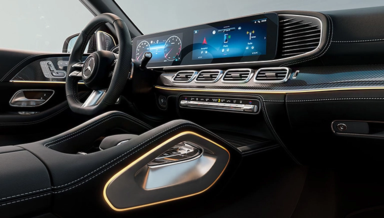 La aventura se alía con el confort: en el habitáculo de la nueva GLS se combinan elementos de diseño de una SUV, como el paquete cromado interior y molduras de madera de roble antracita con el volante de nueva generación. El puesto de conducción Widescreen con sistema multimedia MBUX te permite disfrutar de la mejor experiencia de manejo posible en cada viaje: de forma clara, rápida y eficiente. Descubre cómo se siente la exclusividad con la moderna iluminación de ambiente de 64 colores.