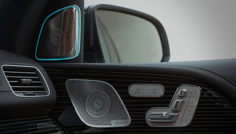 Escuchar música con este nivel de calidad es motivo suficiente para querer viajar en la nueva GLS. El sistema de sonido surround Burmester® cuenta con 13 altavoces, una potencia total del sistema de 590 vatios y Dolby Atmos® para lograr un sonido envolvente de primera clase. Son 13 altavoces controlados individualmente y un potente amplificador DSP de 9 canales que crean una experiencia de sonido perfectamente armonizada con el interior que se concentra en los asientos delanteros, traseros o en todos los asientos si se desea.
