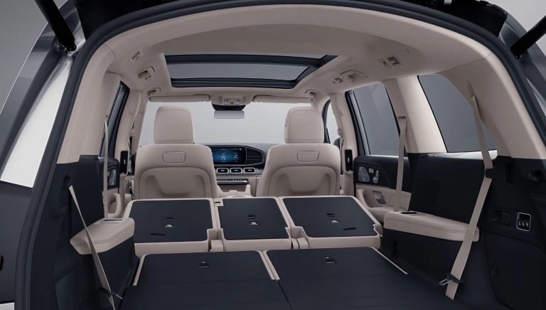 El espacio de la nueva GLS es tan flexible y espontáneo, que se adapta a cualquier situación. Utilice esta camioneta de 7 asientos cómodos según sea necesario o amplíe sin esfuerzo el espacio de carga si lo desea. Gracias a los dos asientos completos en la tercera fila de asientos, sus acompañantes también disfrutarán de un alto nivel de comodidad durante cualquier viaje.