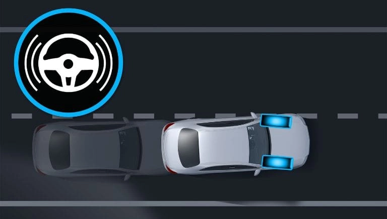 El detector activo de cambio de carril es un observador atento. Si abandonas tu carril por inadvertencia o te aproximas peligrosamente a otros usuarios de la vía, el sistema puede reaccionar con una intervención en el volante para devolverte a tu carril. Si abandonas tu carril a pesar de ello, el sistema advierte mediante la vibración del volante.