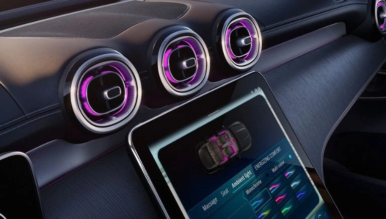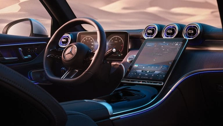 El habitáculo de la nueva GLC SUV marca nuevas pautas. Visualizador central táctil con tecnología LCD de 11.9" orientado 6° - 7° hacia el conductor, volante deportivo multifunción, elementos de adorno de alta calidad: los exquisitos materiales garantizan el confort para un auto lujoso, que percibirás en todos los recorridos. A través de la pantalla táctil se maneja la iluminación de ambiente, los modos de manejo y también la función de climatización.